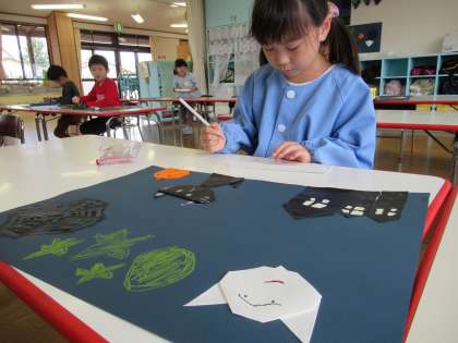 今日のつばめ組の様子 公開日 2022/09/26 更新日 2022/09/26 1日の生活 9月22日(木) 今日はハロウィンの製作や運動会の絵の仕上げをしました。運動会の絵では水彩で細かいところまでしっかり塗ることができました。 4日ぶりにカラーガードもしました。