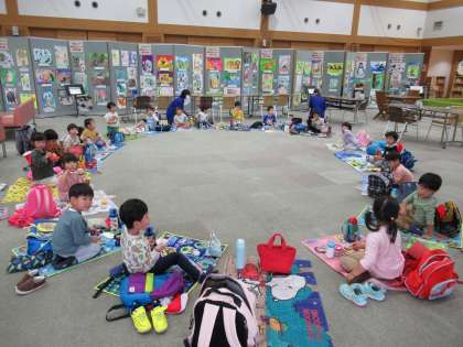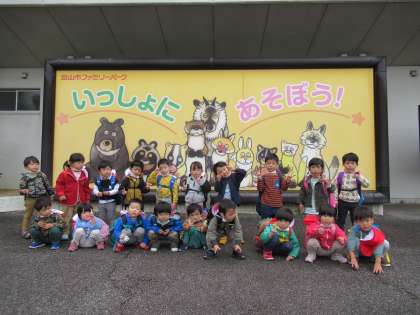 今日は大型バスに乗ってファミリーパークへ遠足に行ってきました。つばめ組さんと一緒に手をつないでたくさんの動物を見て「キリンの赤ちゃんかわいい」「虹色の鳥、きれいだね」「ミーアキャットこっち向いたよ」と大喜びの子供たちでした。途中からはお弁当を楽しみにほし組さんだけで歩きました。「おいしい!」「あ、一緒のおかずが入っているね」とお弁当を嬉しそうに食べていましたよ。帰りのバスの中では疲れて眠っている子もいましたが、遠足の感想を話したり、ゲームをしたりしながら帰ってきました。遠足の準備など、ありがとうございました。