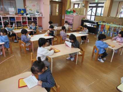 今日は配布物を自分で折りたたみ、おたより袋に入れました。角と角を合わせて指でアイロンをかけ、丁寧におたより袋に入れることができました。お家でも褒めてあげてくださいね。