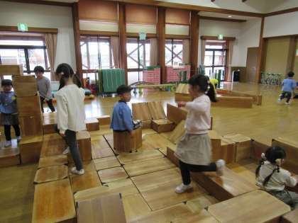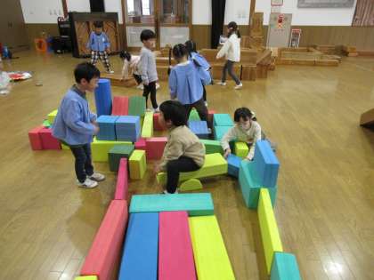 大きな積み木でダイナミックに遊べるのも残り3ヶ月だと思うと、なんだか寂しい気持ちになりました。残り少ない幼稚園生活を、楽しく過ごしていきたいと思います。