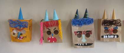 いろいろな素材を選び自分なりに工夫して鬼のお面を作りました。