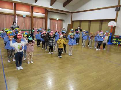 豆まき会がありました その1 公開日 2023/02/06 更新日 2023/02/06 1日の生活 2月3日(金) 今日は豆まき会がありました。朝から園長先生が「鬼が来ませんように」と豆を煎ってくださったのでみんなで見に行きました。豆まき会ではみんなで「豆まき」の歌を歌ったり、自分で作った鬼を紹介したりしました。