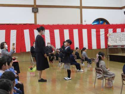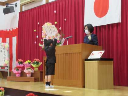 令和4年度 修了式【パート1】 公開日 2023/03/20 更新日 2023/03/20 1日の生活 3月20日(月) 年長組の修了式がありました。園長先生から修了証書をいただき、保護者に今までの感謝の気持ちを込めて「ありがとう」と修了証書を渡す子供たちはとても立派でした。また、お別れの言葉や歌もとても堂々としていて頼もしく成長を感じました。