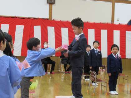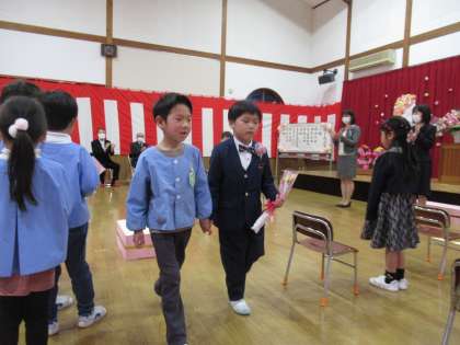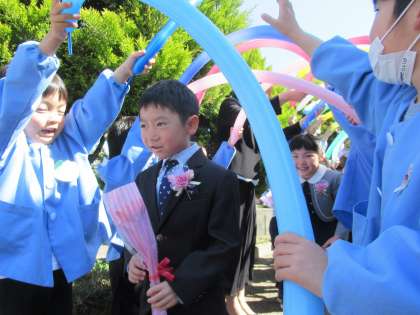 修了式【パート3】 公開日 2023/03/20 更新日 2023/03/20 1日の生活 修了式の退場で在園児に花をもらい手をつないで退場しました。見送りでは、風船のアーチをしてもらい嬉しそうにアーチを通る子供たちでした。 小学校へ行ってもキラキラ笑顔の子供たちで頑張ってほしいと願っています。 保護者の皆様今までたくさんのご協力、ご理解ありがとうございました。12人揃って無事修了式を迎えられたこと、とても嬉しく思います。本日はご修了おめでとうございました。