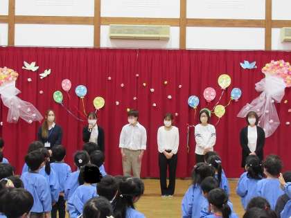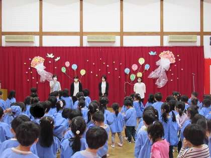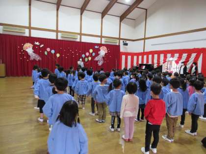 始業式がありました。 公開日 2023/04/07 更新日 2023/04/07 1日の生活 4月5日(水) 今日は4、5歳児の始業式がありました。園長先生の話を聞いたり、担任の紹介を聞いたり、新しい園歌を歌ったりしました。クラスでは、新しい先生や友達にも打ち解け、一緒に遊ぶことを楽しんでいましたよ。