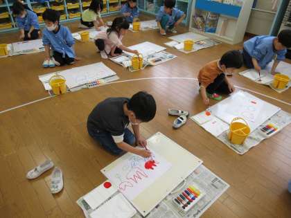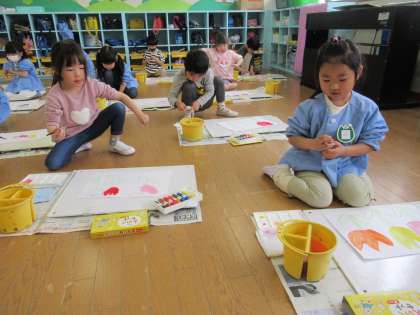 絵の具遊びをしました。(きりん組、らいおん組)