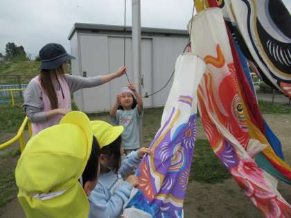 こいのぼりの掲揚をしました。(きりん組、らいおん組)
