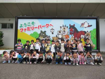 春の遠足でバスに乗って富山市ファミリーパークに行ってきました。バスの中では、歌を歌ったり、「ツキノワグマが見たい!」「僕レッサーパンダ!」などと会話をしたりしながら、心躍らせていた子ども達。心地よい気候の中、元気に園内のさまざまな動物をみてまわりました。