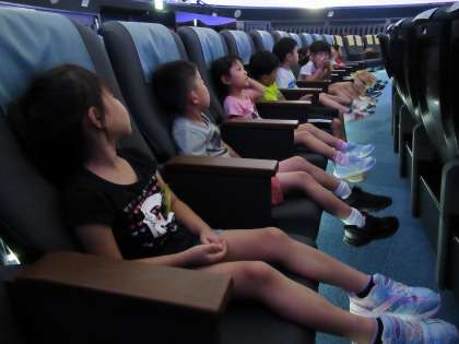 富山市科学博物館に行ってきました その1(5歳児) 公開日 2023/07/12 更新日 2023/07/12 1日の生活 7月11日(火) 今日は富山市科学博物館に行ってプラネタリウムを観覧しました。 星座の話や七夕にまつわる星の話を聞きました。ドームに映し出された星空に子ども達は大興奮!「きれいだね」と友達と一緒に見入っている子もいました。