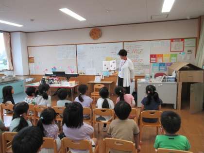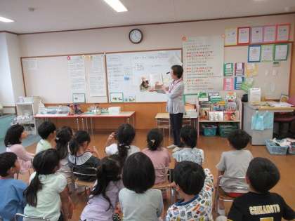 季節のお話や小学校のお話で、子どもたちは興味をもって絵本を見ていました。