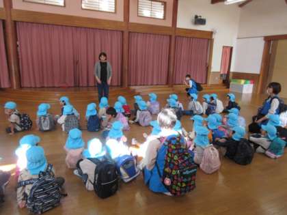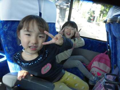 出発式を行い、先生や他年齢の友達に「いってきまーす」と元気いっぱいな声で伝えていました。バスの中では、みんなで歌やクイズをしたり、立山の自然を見たりして、初めてのバス旅を楽しんでいました。