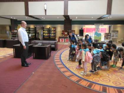 りす組とうさぎ組の年少児は、「ホテル森の風立山」にあるキッズパークに行きました。前日に、キッズパークの紹介をすると「面白そう!」「早く行きたい!」と期待に胸が膨らんでいました。