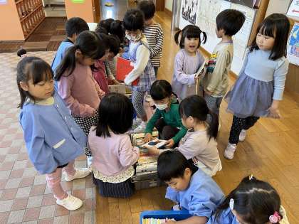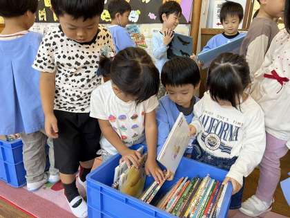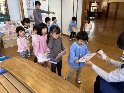 自動車文庫がありました!(こあら、ぱんだ組) 公開日 2023/10/11 更新日 2023/10/11 1日の生活 10月11日(水) 今日は初めての自動車文庫があり、子どもたちはとても楽しそうに絵本や紙芝居を選んでました‼「これ面白そう!」や「これってなんのお話なのかな?」などと一冊一冊をよく見て選ぶ姿が見られましたよ‼ 今後、子どもたちと一緒に絵本を見たり、紙芝居などを読み聞かせしていければと思います。