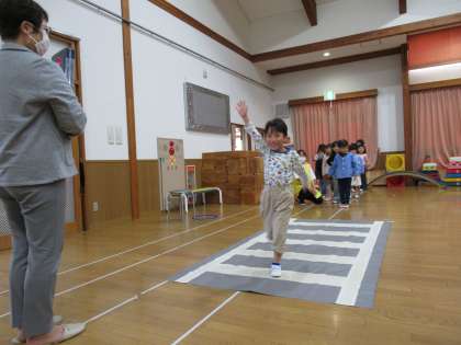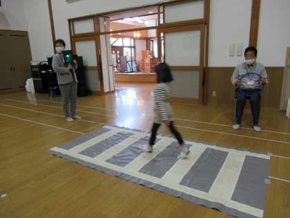 幼児交通安全教室がありました。(5歳児) 公開日 2023/10/16 更新日 2023/10/16 1日の生活 富山市役所生活安全交通課の方から、道路への飛び出しや車の危険、横断歩道の正しい渡り方など教えていただきました。また、模擬道路を使用し実際に道路を渡ってみました。教えていただいたことを守って上手に渡ることができました。今日教えていただいた事をこれからも守り、交通ルールの大切さを日々子ども達に伝えていきたいと思います。