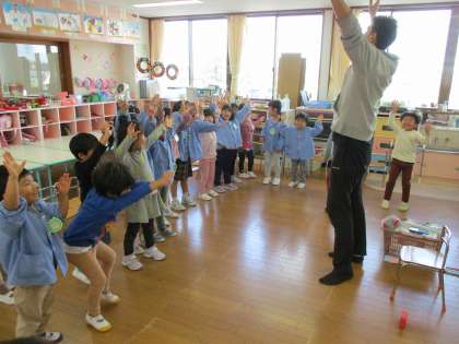 今日はダン先生の英語教室がありました。今日は体の部位の英語を教わり、みんなで『あたま・かた・ひざ・ポン』の英語バージョンを歌いました‼そのあとは、ダン先生の英語を聞いて言われたところを触るゲームで盛り上がりました‼また、おうちでも、頭や肩の英語などを聞いてあげてみてください‼