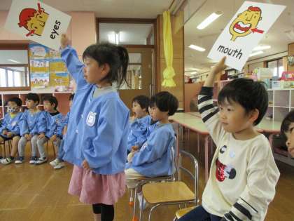 今日はダン先生の英語教室がありました。今日は体の部位の英語を教わり、みんなで『あたま・かた・ひざ・ポン』の英語バージョンを歌いました‼そのあとは、ダン先生の英語を聞いて言われたところを触るゲームで盛り上がりました‼また、おうちでも、頭や肩の英語などを聞いてあげてみてください‼