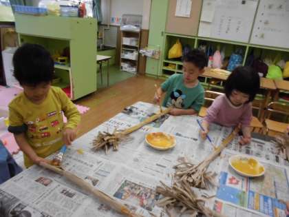 「ぺたぺた」「しゅっしゅっ」などと言いながら、夢中になって楽しく作っていましたよ!