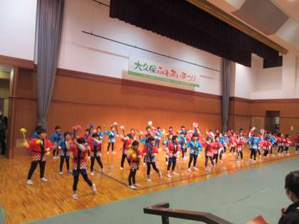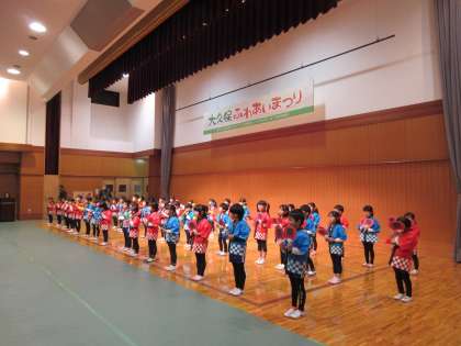 大久保ふれあいセンターで行われた、大久保ふれあいまつりに5歳児が参加し、踊りを披露しました。たくさんのお客さんに少し緊張した様子の子ども達でしたが、曲がはじまると、「ハッ!」「やぁー!」と元気な掛け声とともに、楽しんで踊っていました。