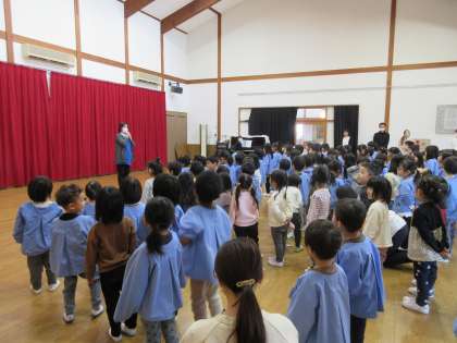 3学期の始業式では園長先生から「4月から一つ大きくなるので、3学期もいろんなことに挑戦しようね」と言われ元気に「はい」と返事をしていました。また、地震の話では自分の身を守る大切さを感じた子供たちでした。