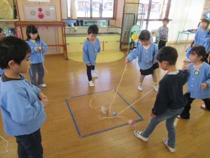 3学期が始まり、また賑やかな生活が始まりました。子供たちは登園するなりコマ回しを楽しみ「家でたくさん練習したよ!」「回せるようになったよ!」と嬉しそうに友達と一緒にコマ回しをしていました。まだうまく回せない子も友達や先生に教えてもらいながら繰り返し取り組んでいましたよ。その他のお正月遊びにもこれからたくさん触れていきたいと思います。