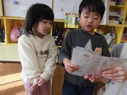 年中さんのお当番活動の様子を見せてもらい「年中さんかっこいい!「お当番やりたい」と目を輝かせていた子ども達。
