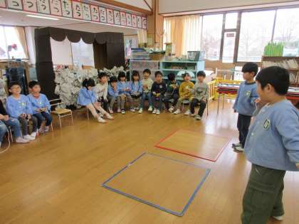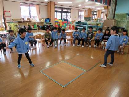 今日はクラスごとにコマ回し大会をしました。2人ずつコマを回し、回ったタイムを計って競い合いました。自分の番になると少し緊張した様子も見られ、気合が入っていた子供たち。友達がしている時は「がんばれー!」と大きな声で応援し、大盛り上がりでした。最後に賞状をもらい、とっても嬉しそうな笑顔の子供たちでした。