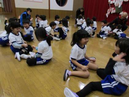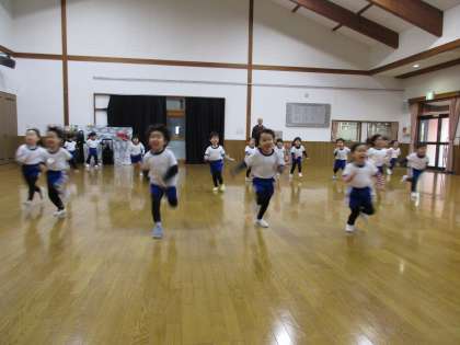 体操教室がありました(こあら組、ぱんだ組) 公開日 2024/02/01 更新日 2024/02/01 1日の生活 2/1(木) 今日は今年度最後の体操教室がありました。かけっこをしたり、動物に変身したりして楽しみました。また、スキップやけんけんなどにも挑戦していましたよ‼最後に、じゃんけんゲームや人数集めゲームなど様々なゲームで楽しんだ子どもたちでした。またお話聞いてみてくださいね‼
