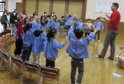 今日は英語教室の参観がありました。お家の方が見てくれていることで少し恥ずかしそうな姿もありましたが、とっても嬉しそうな子供たちでした。英語を使ったリズム遊びやゲームをして楽しい時間を過ごしました。
