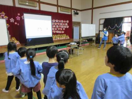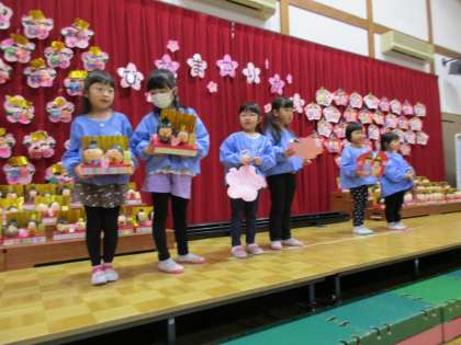 ひなまつりゲームをしました(きりん組、らいおん組) 公開日 2024/03/04 更新日 2024/03/04 年間行事 3月1日(金) ひなまつり会がありました。頑張って作った作品を紹介したり、みんなで「ひなまつり」の歌を歌ったりして過ごしましたよ。 由来や紙芝居を真剣に聞いていた年長さん「ひなまつり二択クイズゲーム」では自信たっぷり「こっちだ!」「絶対こっちだよね!」とお友達と話しながら正解だと思うところへ移動していました。