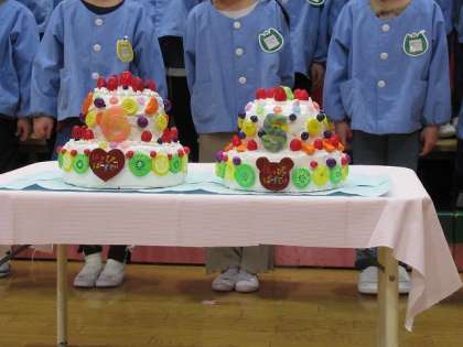 まるで本物のようなケーキに年少、年中は大喜びでした!