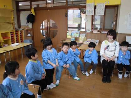 終業式を終え、今日でりす組みんなで遊ぶことが最後となりました。子供たちから「みんなでお引越しゲームをしたい」とリクエストがあり、子供たちの大好きなゲーム遊びをしました。様々なゲーム遊びをする中で”みんなで遊ぶのがたのしい”と感じてきた子供たち。楽しい時間はあっという間に過ぎ「まだみんなで遊びたかったな」と寂しがる様子が見られました。りす組で楽しい思い出がたくさんでき、進級後も新しいクラスで友達と協力したり、遊んだりして楽しい思い出をつくってほしいと思います。