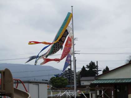 幼稚園が臨時休業となり静かな幼稚園ですが、園庭のこいのぼりは元気に泳いでいます。