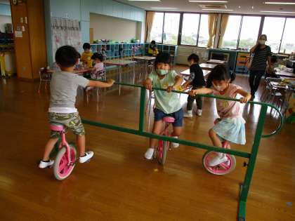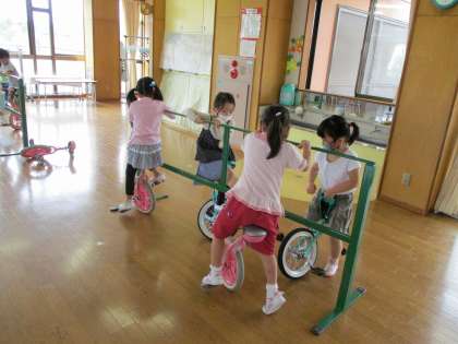 友達と一輪車に挑戦中!! 早く乗れるようになりたいなぁと頑張っていました。