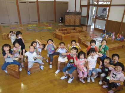 大型積み木を使って遊びました(たんぽぽ組) 公開日 2020/06/08 更新日 2020/06/08 1日の生活 6月8日(月) 先週もプレイルームの大型積み木を使って、迷路や家をつくって遊んでいた子供たち。「今日も積み木したい」という声がたくさん聞かれたので、かけっこをした後大型積み木で遊びました。いろいろな大きさの積み木を並べたり、積み重ねたりして、友達と話をしながら組み立てていました。一つ一つが最後にはつながって、大きな迷路ができあがり、みんなで渡っていました。
