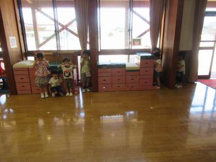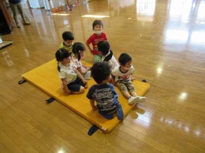 今日はプレイルームでかけっこをしたり、「ネコとパンダ」をして遊びました。みんなネズミの家に帰るのが上手で、先生ネコは全然捕まえられませんでした・・・。ネコに見つからないように隠れる子や、歌を「あーがりめ!さーがりめ!」と上手に歌ったり、真似をしたりする子も増えてきて遊びを楽しんでいました。またみんなで遊びましょうね!