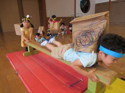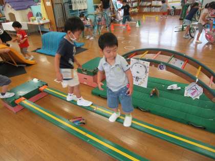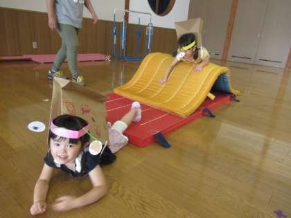 カタツムリごっこ!(ほし組) 公開日 2020/06/26 更新日 2020/06/26 1日の生活 6月26日(金) 今日はフープの家で休んでいると、クマやハチやお化けがやって来てみんなで逃げたり、なんとドライブするカタツムリまでいて、今日はみんなで大型ショッピングセンターに行きました! また、今日もつばめ組の鬼滅の刃の修行に、遊びに行きました。お兄さんお姉さんに手を取ってもらったり、自分で一生懸命修行したりしていましたよ!