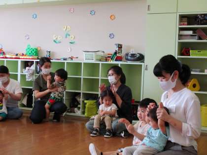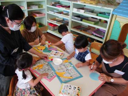 親子サークル開始 公開日 2020/07/02 更新日 2020/07/02 1日の生活 7月2日(木) 2か月遅れですが、今日から親子サークルが始まりました。みんなで絵本を見たり、手遊びをしたり、名前を呼ばれて返事をしたりしました。そして、お母さんと一緒に画用紙で家をつくって、顔を貼りました。これから、たくさんのお友達が遊びに来てくれるのを待っています。一緒に遊びましょうね。