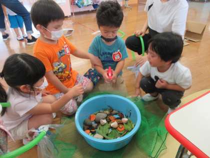 今日は初めてフルーツバスケットをして遊びました!自分は何のフルーツなのか考えて、よく先生の言葉を聞いたり、一生懸命空いている椅子を探して座ったり、初めてのフルーツバスケットを楽しんでいました!他にも消防士ごっこをしたり、鬼滅の修業をしたり、カタツムリの世話をしたり、充実した一日になりました!