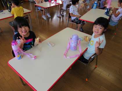 つばめ組は誕生児がいなかったので誕生会はしませんでしたが、みんなでシューアイスを食べました。「冷たくておいしいね」と大事そうに少しずつ食べていましたよ。