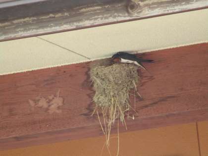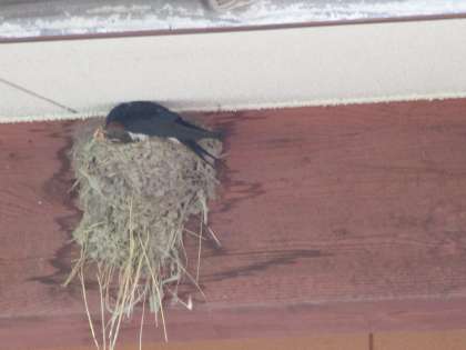 ツバメの巣から赤ちゃんが顔を出しているのを見つけました。何回も巣が落ちてしまって、今年はどうなるのかと思っていましたが、ようやく親ツバメが餌を運んでいるのを見ることができました。近くに行くと顔を出してくれず、遠くからの写真ですが2枚目に赤ちゃんの口ばしが写っているのが見えるかな?