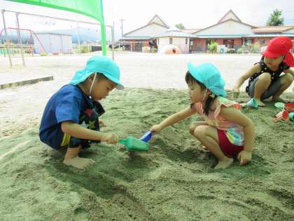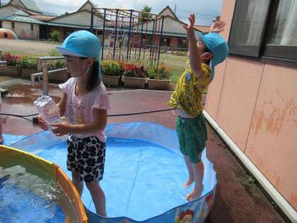 今日はほし組のみんなにも草むしりのお手伝いをしてもらい、最後に山をかけっこしてきました。1学期よりもとっても足が速くなっていて感動しました。運動会が楽しみです!そして、今日もまた砂遊びと水遊びをして遊びました。最後の水遊びも気持ちよかったね!