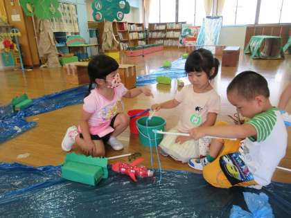 あつまれ!おおくぼのもり(たんぽぽ組) 公開日 2020/09/18 更新日 2020/09/18 1日の生活 9月18日(金) 「今日も遊びたい」「すぐに遊んでいい」と朝から積極的な子供たち。つばめ組さんに「つばめ組さんのところにも遊びに行っていいですか」と聞きに行き、しばらくの間、一緒に遊びました。それぞれの場所で友達と会話を楽しみながら、遊んでいました。
