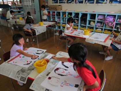 今日は運動会が終わってからお家の方に「頑張ったね」と言われたことや「家でビデオを見たよ」などと家に帰ってからも運動会の頑張りを十分に認められたことを嬉しそうに話してくれた子供たちです。クラスでは運動会の思い出を描きました。フラッグやリレー、エール交換など、それぞれに自分の頑張った場面や思い出に残る場面を思い出しながら描きました。