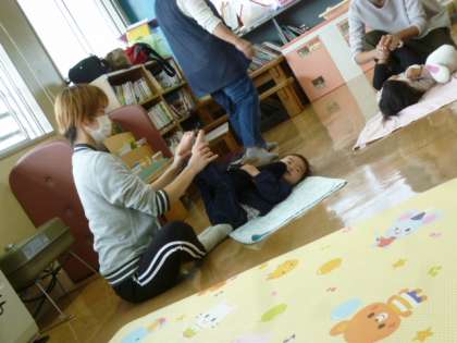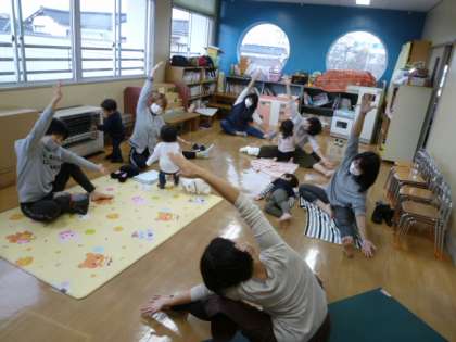 ママと一緒に1、2、1、2、・・・体を動かして、気持ちよさそうでしたよ。
