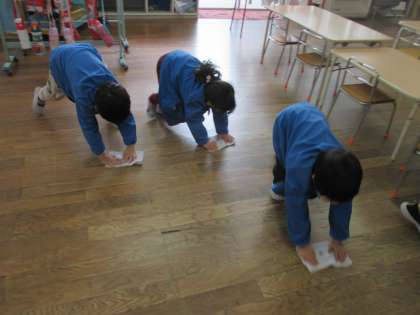 終業式では、2学期を振り返ったり、冬休みの約束をしたりしました。部屋に戻ってからは、みんなで大掃除。自分が使っているロッカーや床等、雑巾でピカピカにしましたよ。気持ちよく3学期を迎えられそうです。