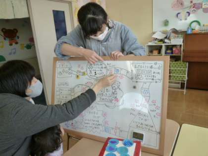 サイコロができたらゴール目指して、ママと一緒に出た目を進みます。