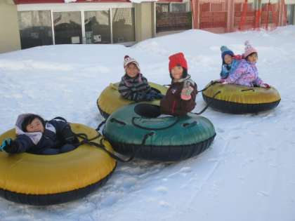 子供たちが1番楽しみにしていたチューブソリ滑り!思っていた以上にソリのスピードが速くてびっくりでした。慣れてくると友達とペアで滑ってみたり、アンパンマン滑り、クルクル回転滑りなども楽しんでいましたよ。