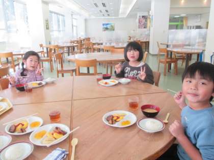 何度も何度も楽しんでお腹がペコペコになった子供たち。食堂では美味しいランチをいただきました。