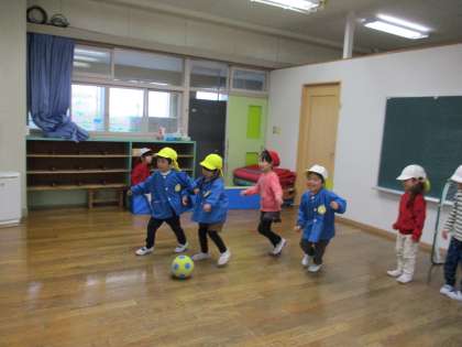 毎日元気いっぱいの子供たち。雨の日の今日は、サッカーをしました。