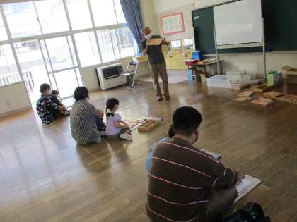 今年度の親子活動は、”どんぐり工房”の花岡貞彦先生に来ていただき『ビー玉転がし』をつくりました。